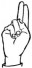 На ћирилици написано ФИЛОТИЈЕ ПОЛИЋ састоји се из 13 слова [?]. Исписано ћириличном једноручном азбуком за глувонеме: